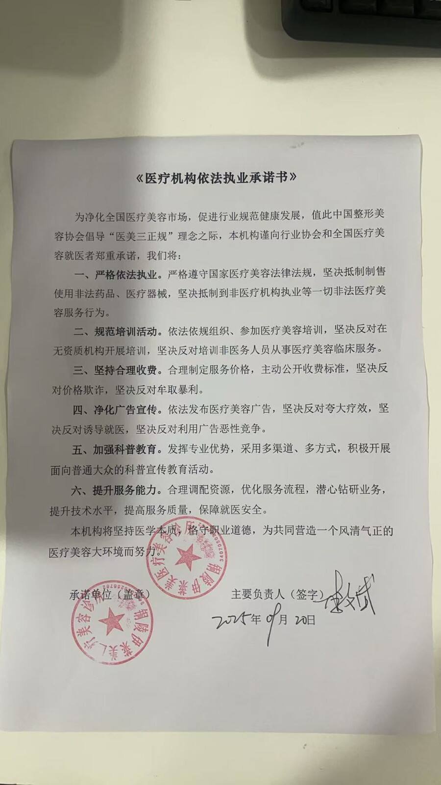 医疗机构依法执业承诺书: