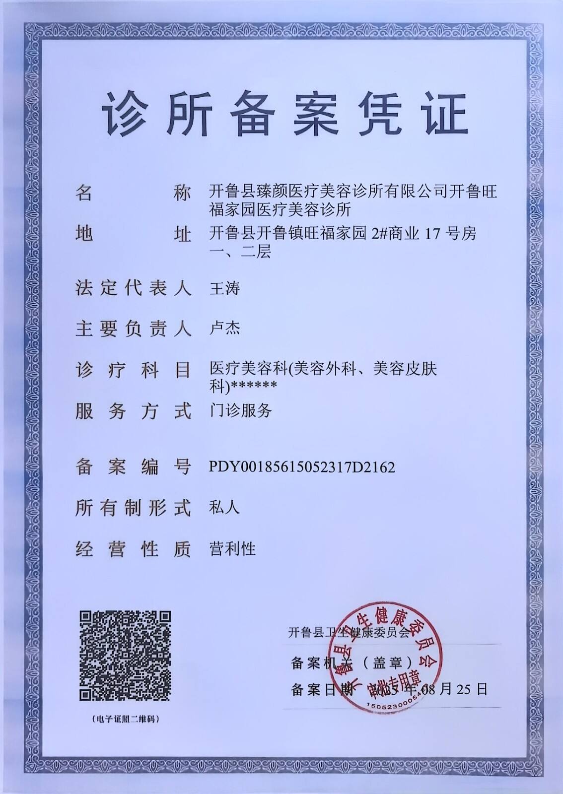开鲁县臻颜医疗美容诊所有限公司开鲁旺福家园医疗美容诊所 已验证
