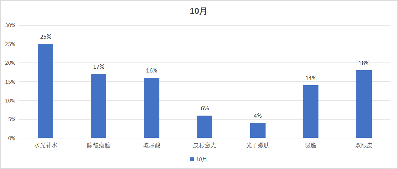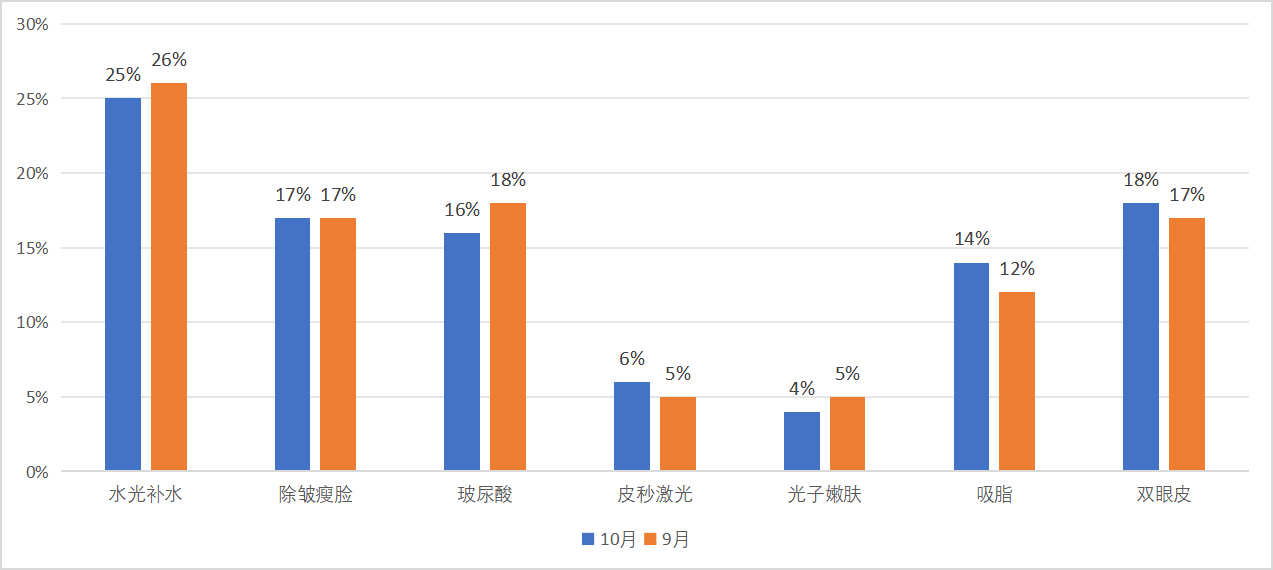 本报告期内,各大电商平台上水光补水、双眼皮、除皱瘦脸、玻尿酸销量占比较大;