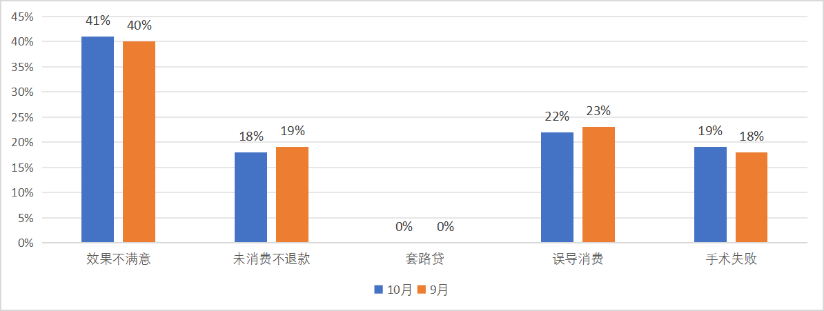 在消费投诉中,对效果不满意、误导消费、手术失败占据投诉榜的前三位。