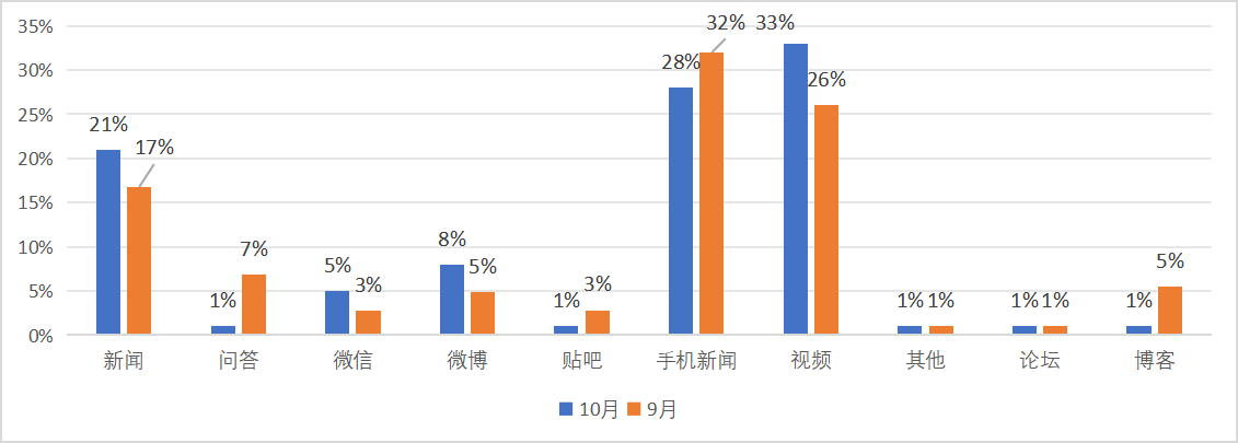 各媒体平台占比与上月环比对照图如下: