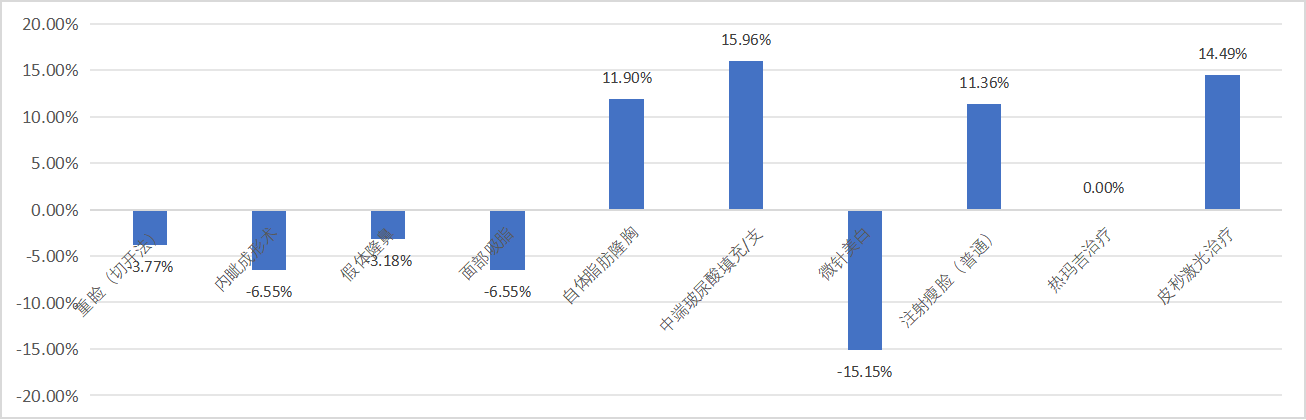 同比上期,皮秒激光、吸脂和双眼皮有所上升。