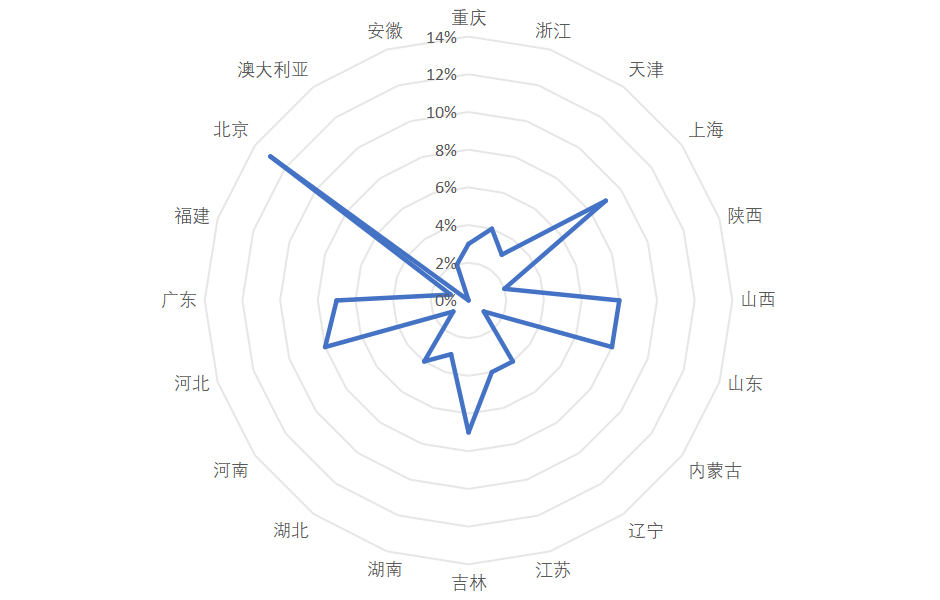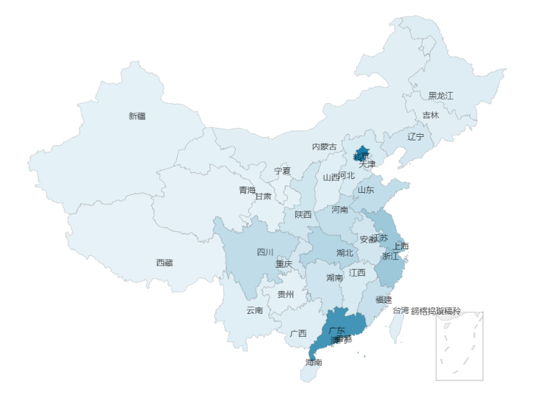 舆情分布区域Top10: 北京、广东、上海、江苏、浙江、湖北、四川、山东、河南、福建。