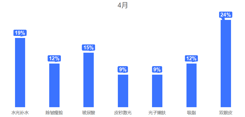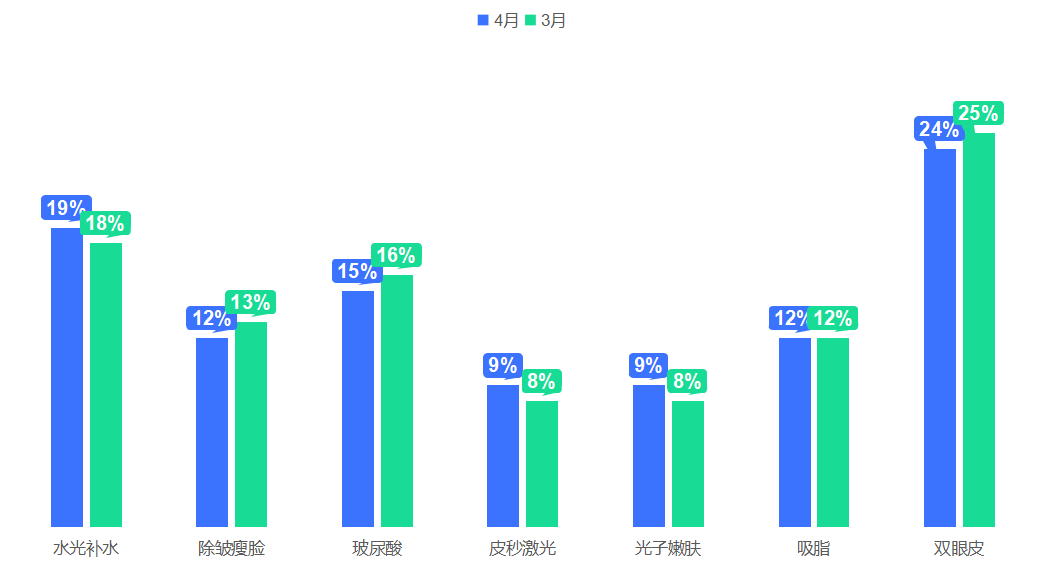 本报告期内,各大电商平台上双眼皮、水光补水、玻尿酸销量占比较大;