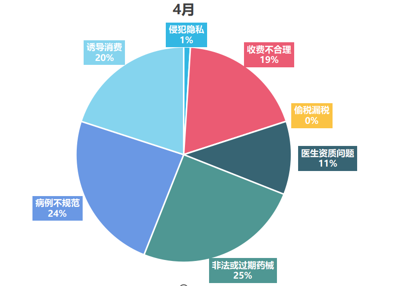 4月的管理违规中,病历不规范、诱导消费、非法或过期药械问题占比较大。