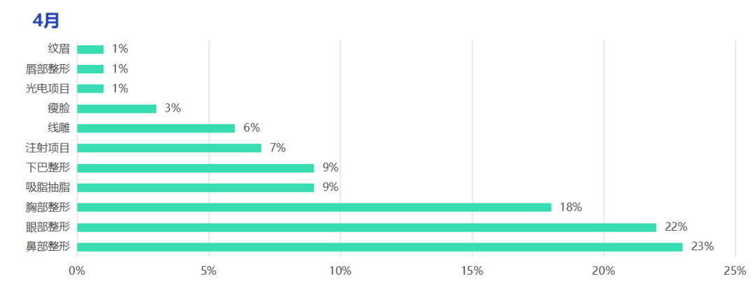 本报告期内,鼻部整形项目涉及的违规行为最多,其次是眼部整形和胸部整形。