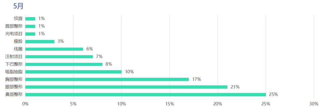 本报告期内,鼻部整形项目涉及的违规行为最多,其次是眼部整形和胸部整形。