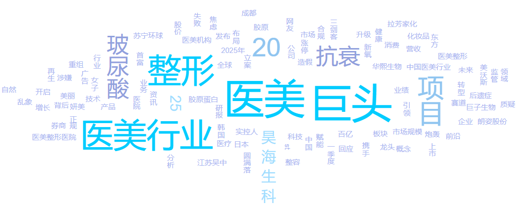 本报告期内,与项目推荐、各地医院排名、口碑、价格等相关的词热度较高,具体如下(字号越大,热度越高):