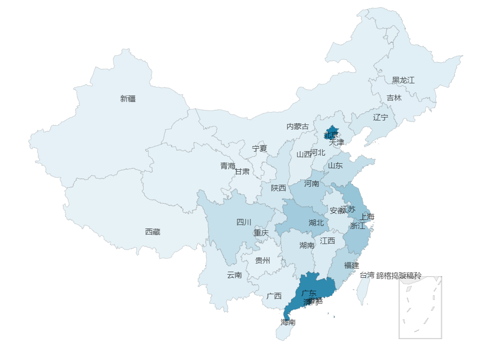 全国各地区的医疗美容行业信息量,与区域内的行业机构数量、密度、市场规模和热度紧密相关,也与地区经济发达程度大致成正比关系。
