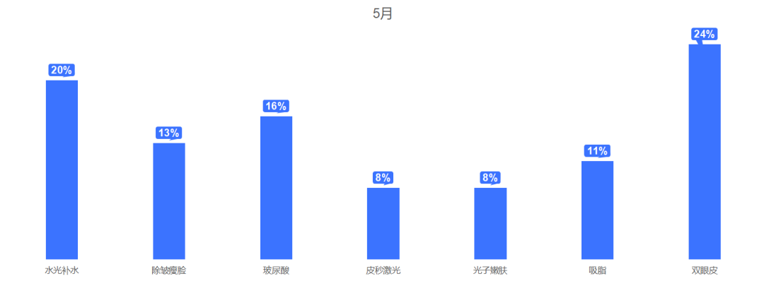 本报告期内,各大电商平台上双眼皮、水光补水、玻尿酸销量占比较大;