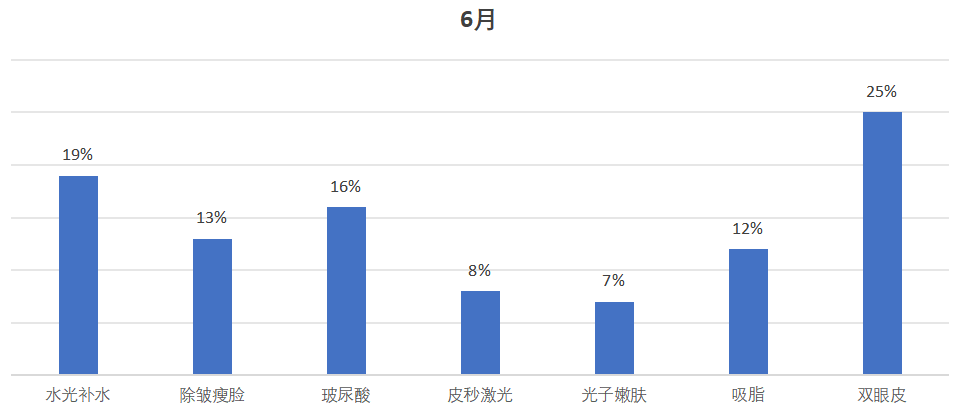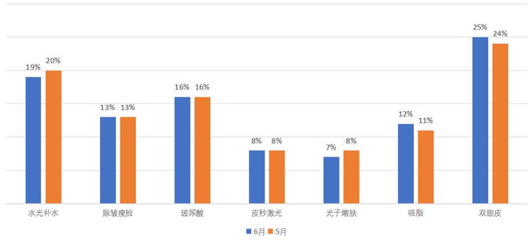 本报告期内,各大电商平台上双眼皮、水光补水、玻尿酸销量占比较大;