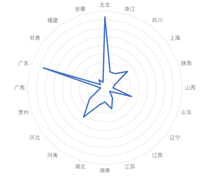全国各地区的医疗美容行业信息量,与区域内的行业机构数量、密度、市场规模和热度紧密相关,也与地区经济发达程度大致成正比关系。